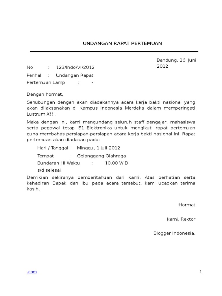 Dalam pelaksanaan suatu kegiatan rapat, kita tidak bisa begitu saja mengadakannya tanpa suatu. Contoh surat resmi undangan rapat perusahaan. Demikian undangan ini kami sampaikan, mengingat pentingnya acara ini. Report contoh surat undangan rapat. Rapat memang memiliki peranan yang sangat besar dalam sebuah organisasi.